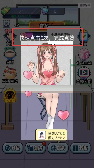 3、按照红色箭头指示的方向,快速点击屏幕5次以完成点赞任务,从而获得游戏得分与奖励,积累游戏资源并提升角色能力。