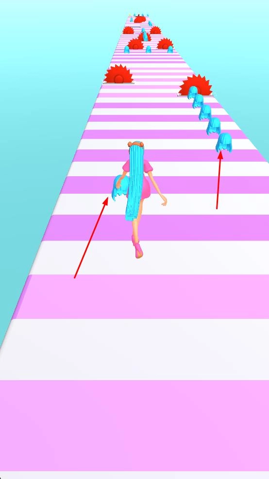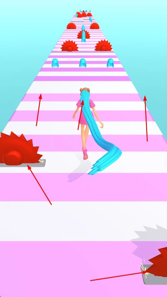 1、收集头发小心前行:在道路上控制角色移动,通过收集头发使长发变长,同时避开电锯、剪刀等危险道具,若不慎被危险道具碰到,头发会缩短,需专注操作确保头发持续增长。