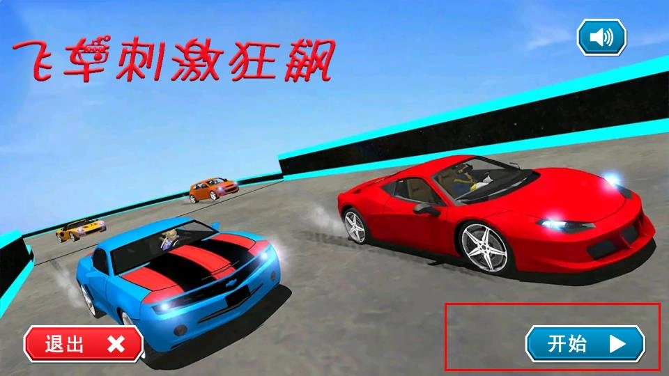1、玩家在游戏主界面点击右侧的蓝色开始按钮后,即可进入赛车场景,和其他车辆一起开启高空竞速挑战。