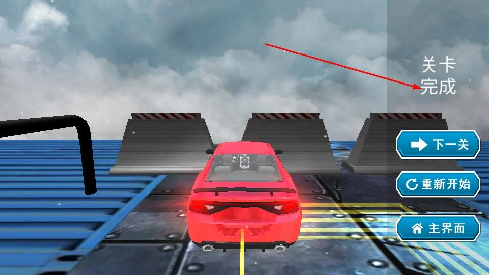 3、顺利到达终点后,界面会显示关卡完成,此时可以选择进入下一关继续挑战、重新开始当前关卡、重玩该关卡或者返回主界面。