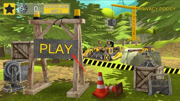 1、在万能创造机械师的初始界面,点击PLAY标识,即可进入世界选择环节,以此开启游戏流程;后续你可以挑选不同的游戏世界,尽情体验工程建造的玩法。