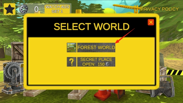 2、进入世界选择界面后,点击FOREST WORLD选项,即可进入森林主题世界。通过这一操作,系统会加载森林场景,你可以在该场景中开展工程任务,体验不同的场景机制。