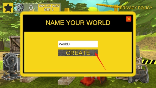3、进入命名界面后,输入你想要的世界名称,点击CREATE按钮,即可创建属于自己的专属世界。通过这一命名与创建的过程,你可以定制个人化的游戏空间,在自己搭建的世界里开展工程挑战,亲身感受游戏的创造机制。