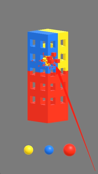 2、瞄准射击积分玩法:选用色彩各异的弹药,瞄准并击中对应颜色的方块,凭借精准射击累积分数,体验三维场景带来的立体操作感。