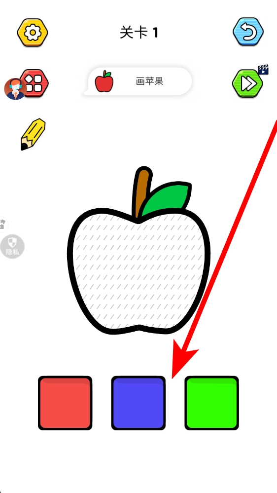 1、打开游戏后,在关卡中会看到绘画提示画苹果,根据虚线轮廓,用画笔工具沿着轮廓进行绘制,勾勒出物体的外形,开启绘画创作。