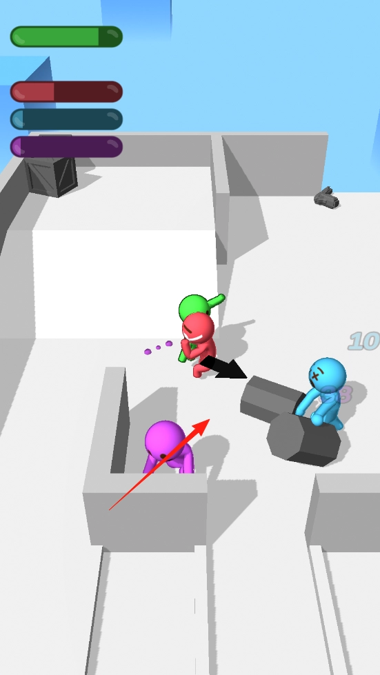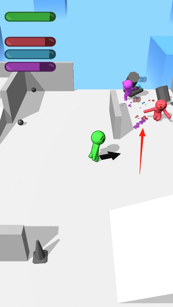 1、彩色火柴人涵盖绿、红、紫、蓝等多种颜色,具备攻击、移动能力,还能对场景进行破坏,比如撞碎墙体。