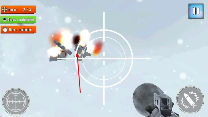 当瞄准目标后,点击右侧的射击按钮,发射炮弹攻击敌机。