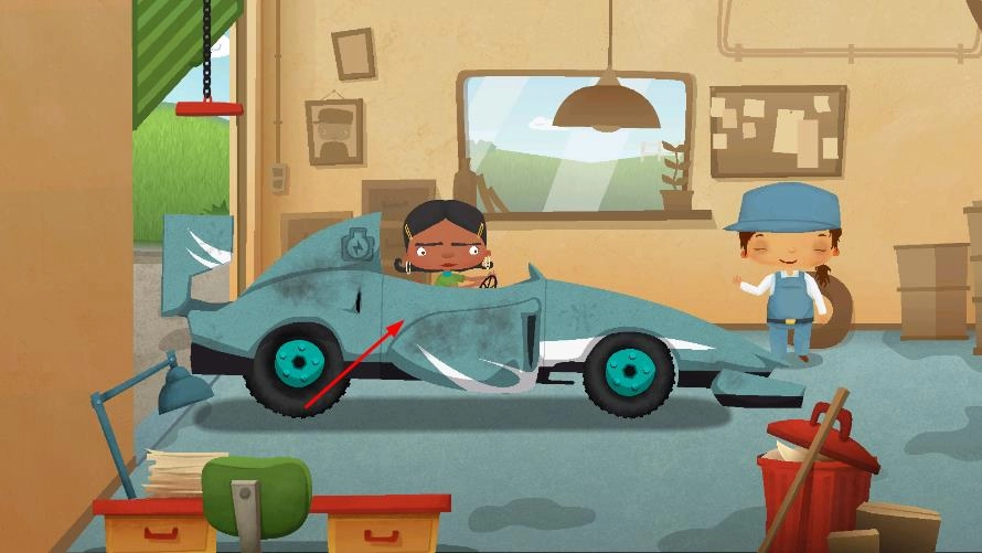 1、进入汽车修理厂场景,面对待修的赛车,按照提示启动维修流程。