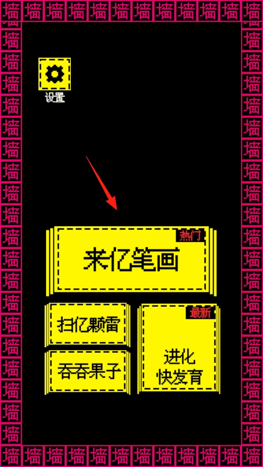 1、登录游戏进入主界面后,能看到“来亿笔画”“扫亿颗雷”“吞吞果子”等选项,点击“来亿笔画”即可进入迷宫关卡。