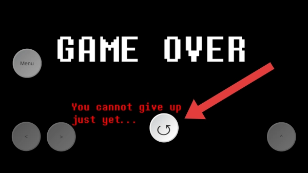 3、根据文字的提示你还不能放弃……,可点击继续进行战斗,属于像素风格游戏的界面元素。