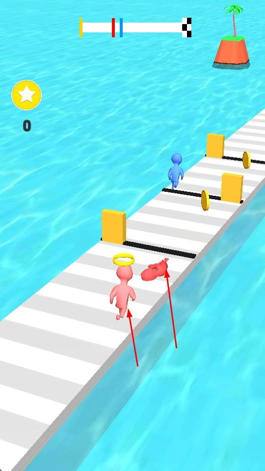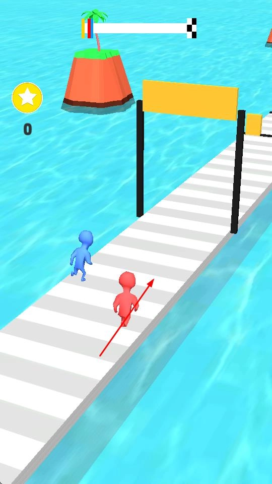 2、在赛道行进过程中,留意上方的进度条,全力推动游戏进度,超越其他蓝色小人,抢占领先位置。