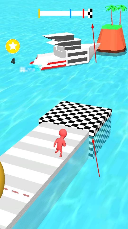 3、朝着终点处的黑白格子区域行进,抢先到达终点,完成关卡任务,以此提高自己在游戏里的表现。