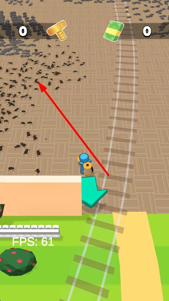 1、角色需要靠近蟑螂或垃圾时,触发收集,沿路径前行,清理场景内的蟑螂,积累金币,从而解锁其他工具。