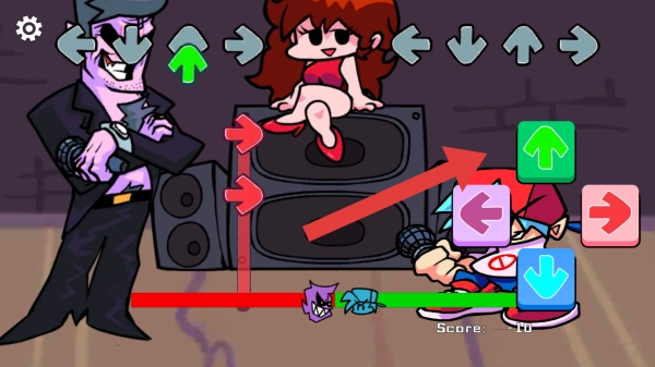 3、画面里有两位玩家正在展开较量,需依据上下左右的方向箭头提示,点击对应的按键,操作正确的一方就能得到相应的分数。