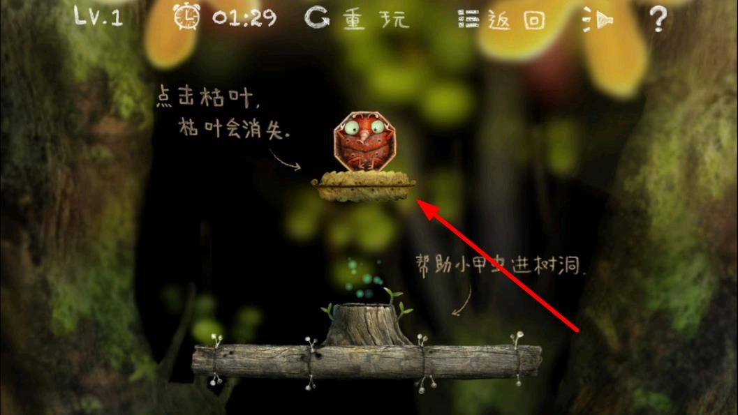 游戏进行过程中,要依据小甲虫的移动情况,及时调整应对策略,借助场景里的各种元素引导它躲开障碍,一步步朝着洞穴靠近。