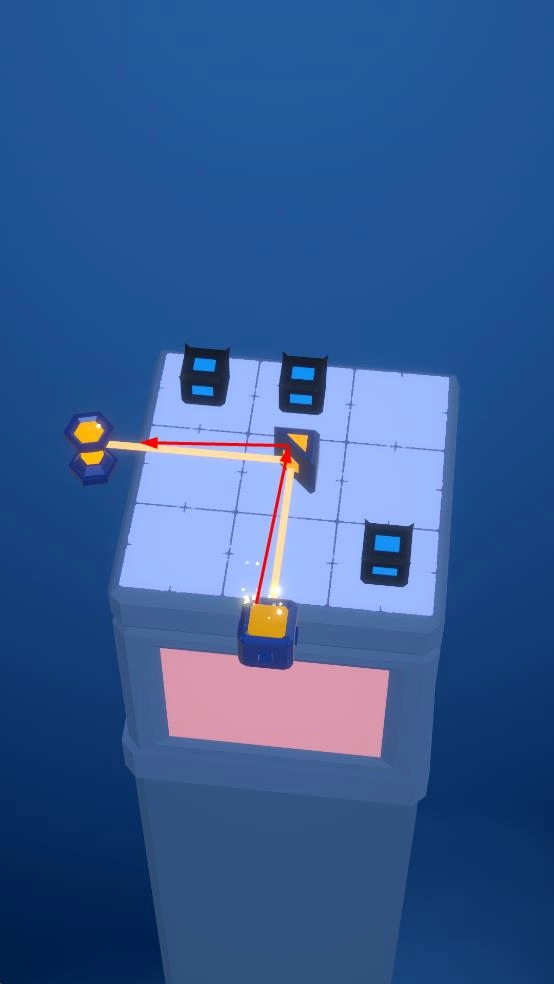 1、按照提示,把指定道具拖到灯塔的网格上,通过调整道具的摆放位置来搭建光线路径。