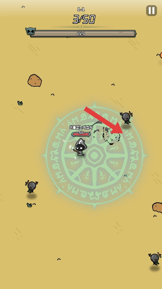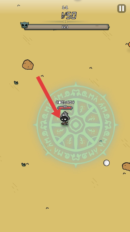 1、进入关卡1-1后,操控无名魔法师在刻有符文的圆形区域熟悉初始站位,为迎接即将出现的敌人做好准备。