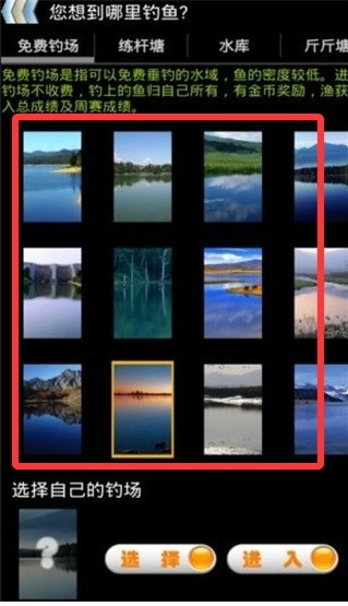 2、然后可以选择一个喜欢的钓场进入钓鱼。