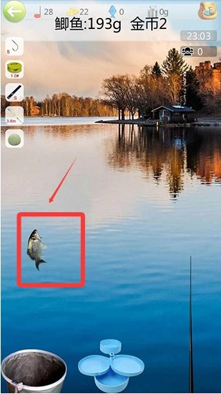 2、抛竿后留意浮漂的动态,一旦浮漂有轻微晃动或者快速下沉的情况,点击屏幕拉动鱼线,就能开启紧张的拉杆对抗环节。