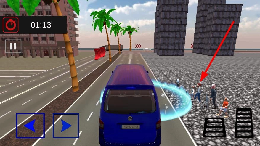 1、进入游戏后,利用左右箭头按钮操控面包车转向,按照路面标识与任务提示,朝着目标区域行驶,务必避开道路上的障碍,开启这场城市驾驶挑战。