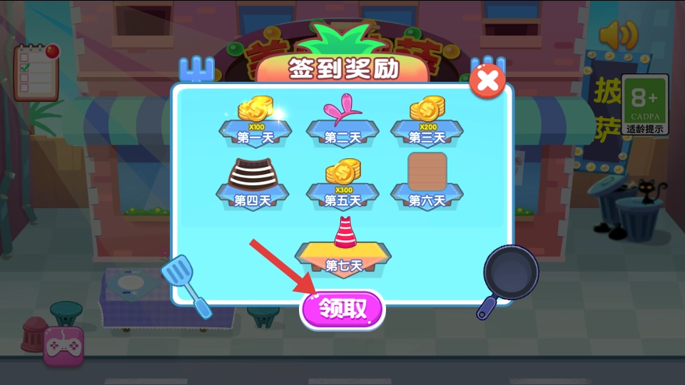 3、奖励预览机制:签到界面会提前呈现后续连续签到可获得的奖励,比如连续签到7天的奖励是高级烤箱工具,帮助玩家清晰知晓目标,增强每日登录的积极性。