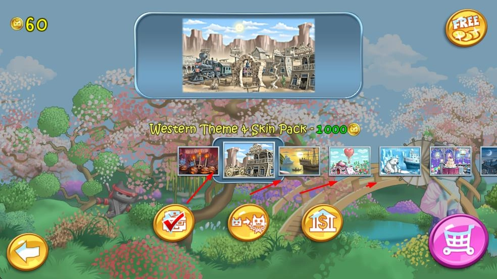 3、消耗金币购买西部、海盗等主题皮肤包,切换游戏场景外观。