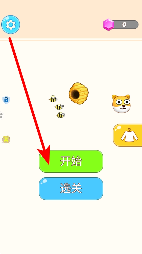1、新手玩家进入游戏后,点击开始或选关按钮选定关卡,随即进入对应场景。场景内设有狗头、蜂巢等元素,玩家需在此准备规划保护防线。