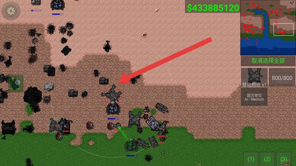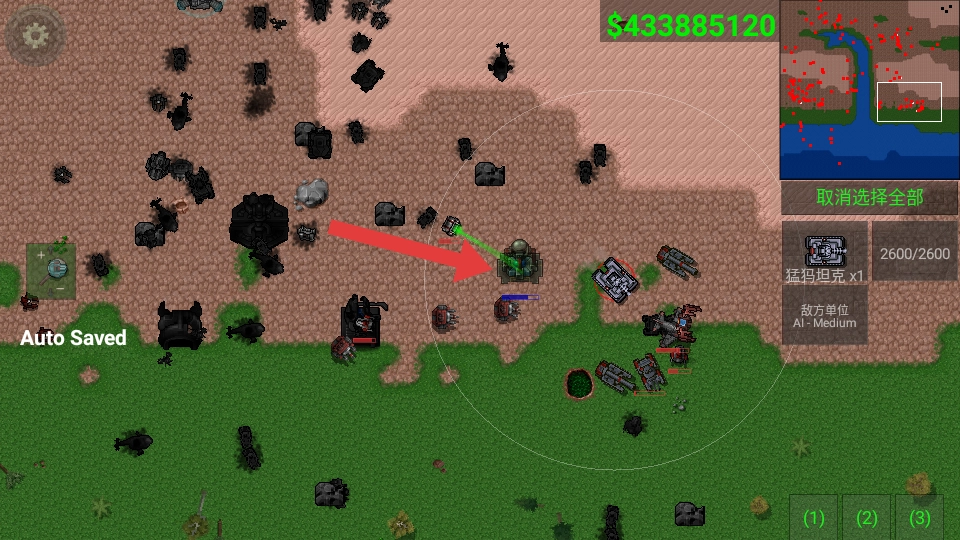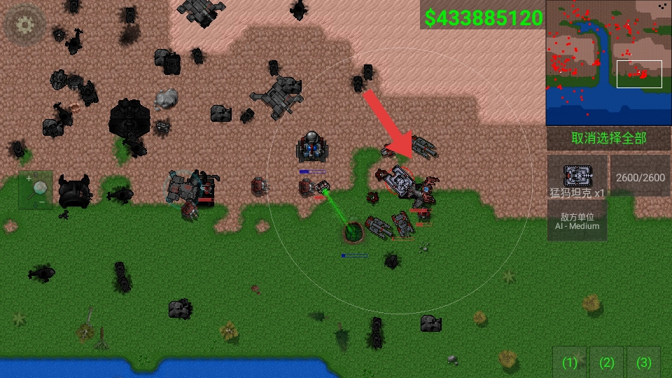 3、密切关注右上角小地图呈现的敌方动态,当遭遇标注为AI-Medium的敌方单位时,集结我方兵力展开攻击,击毁重型坦克等目标。