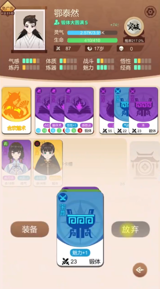 1、优先抽取基础功法卡,稳固灵根属性,提升修炼效率与灵气储备。