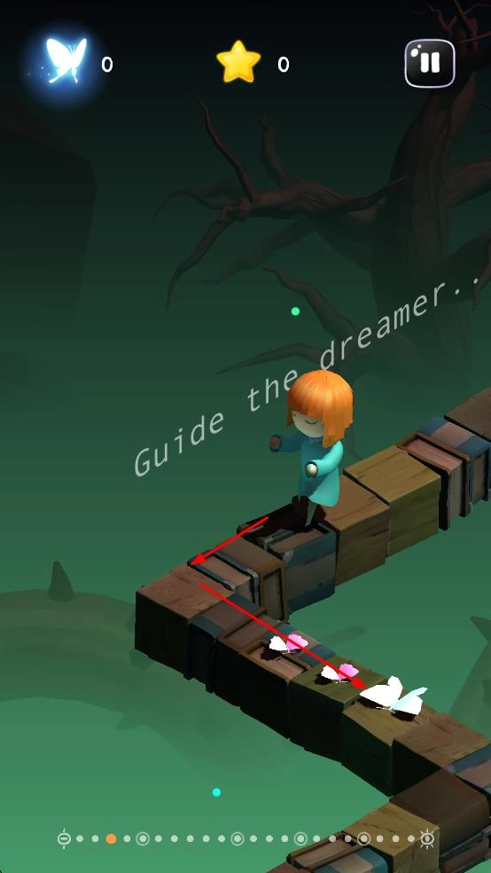 3、沿着栈道进行探索,按照“Guide the dreamer”的指引,收集各类元素以推进关卡,进而解锁新的梦境。