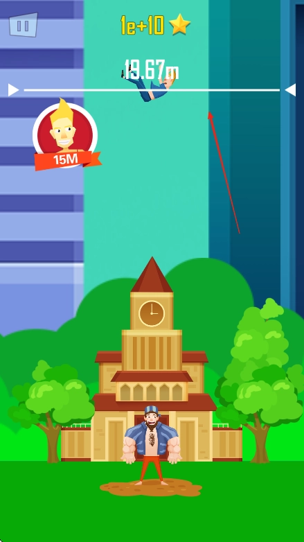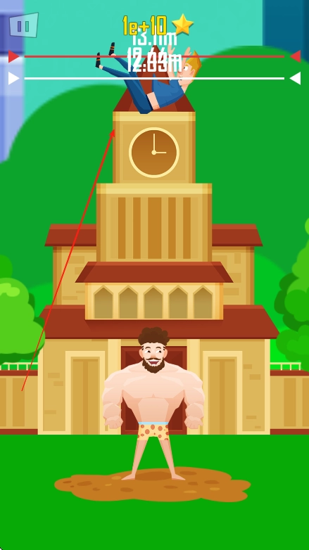 2、点击屏幕可操控大力士托起角色,再次点击能让大力士把角色抛出去,你可以通过把握点击的时机来调节抛出的力度与角度。