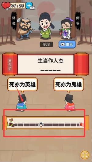 1、开始游戏后先熟悉成语和古诗词两种题型的答题方式。遇到两个同音字选择时,结合成语整体含义判断正确选项,提高答对率。