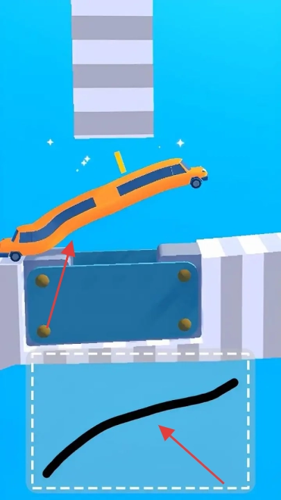 1、基础绘制操作:用手指在屏幕上直接画出线条连接汽车起点与对岸,线条形成桥梁,绘制完成后启动汽车,若桥梁稳固且路径顺畅,汽车即可抵达对岸。