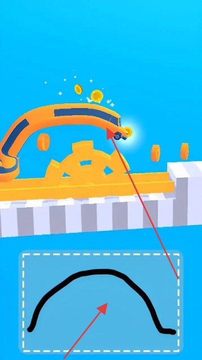 2、已解锁深沟与斜坡地形,需绘制弧形或折线桥梁,同时避开沿途尖刺障碍。