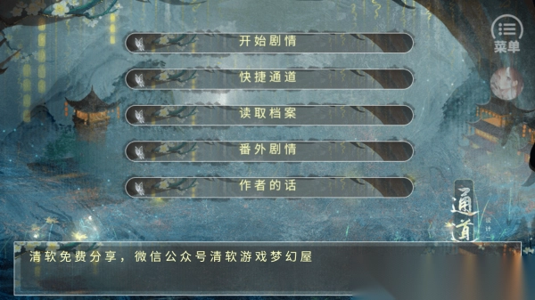 2、功能页选【开始剧情】启动新篇,【快捷通道】跳转阶段,【读取档案】延续进度,【番外剧情】探索额外故事,或查看【作者的话】了解创作内容。