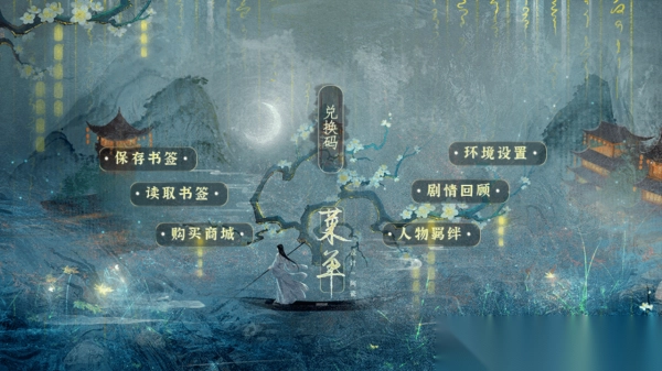 3、菜单界面可【保存书签】留存进度,【读取书签】恢复存档,【购买商城】获取道具,【剧情回顾】重温情节,查看【人物羁绊】,调整【环境设置】,输入【兑换码】领福利。