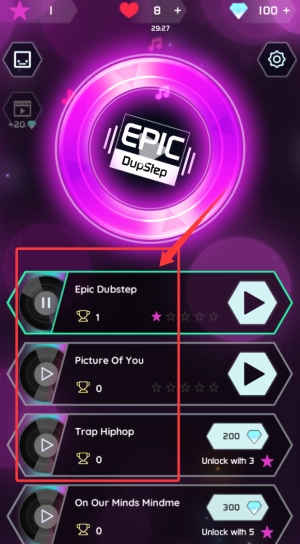 2、玩家可在游戏里自主选择喜爱的音乐开启游戏,使游戏体验与个人音乐偏好巧妙结合,带来独特趣味。