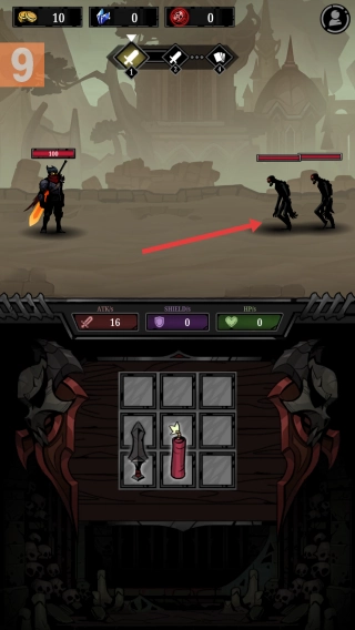 1、遭遇敌人:面对右侧黑色亡灵敌人,进入战斗筹备。