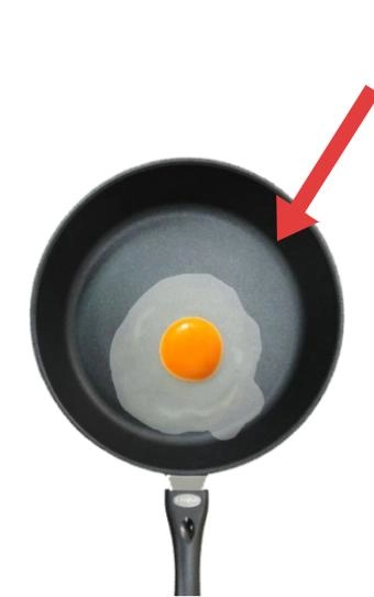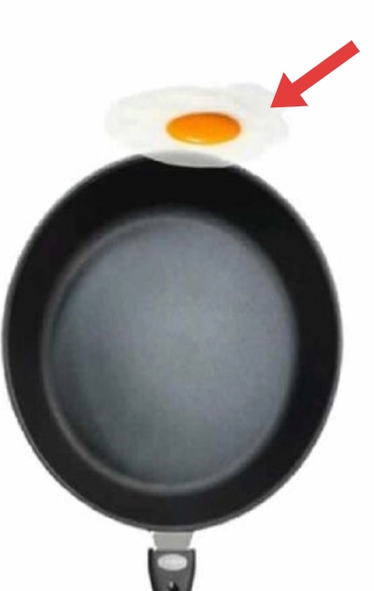 1、在煎颗蛋吧的游戏里,将上方的荷包蛋移动至黑色平底锅正上方位置,准备进行投放操作。