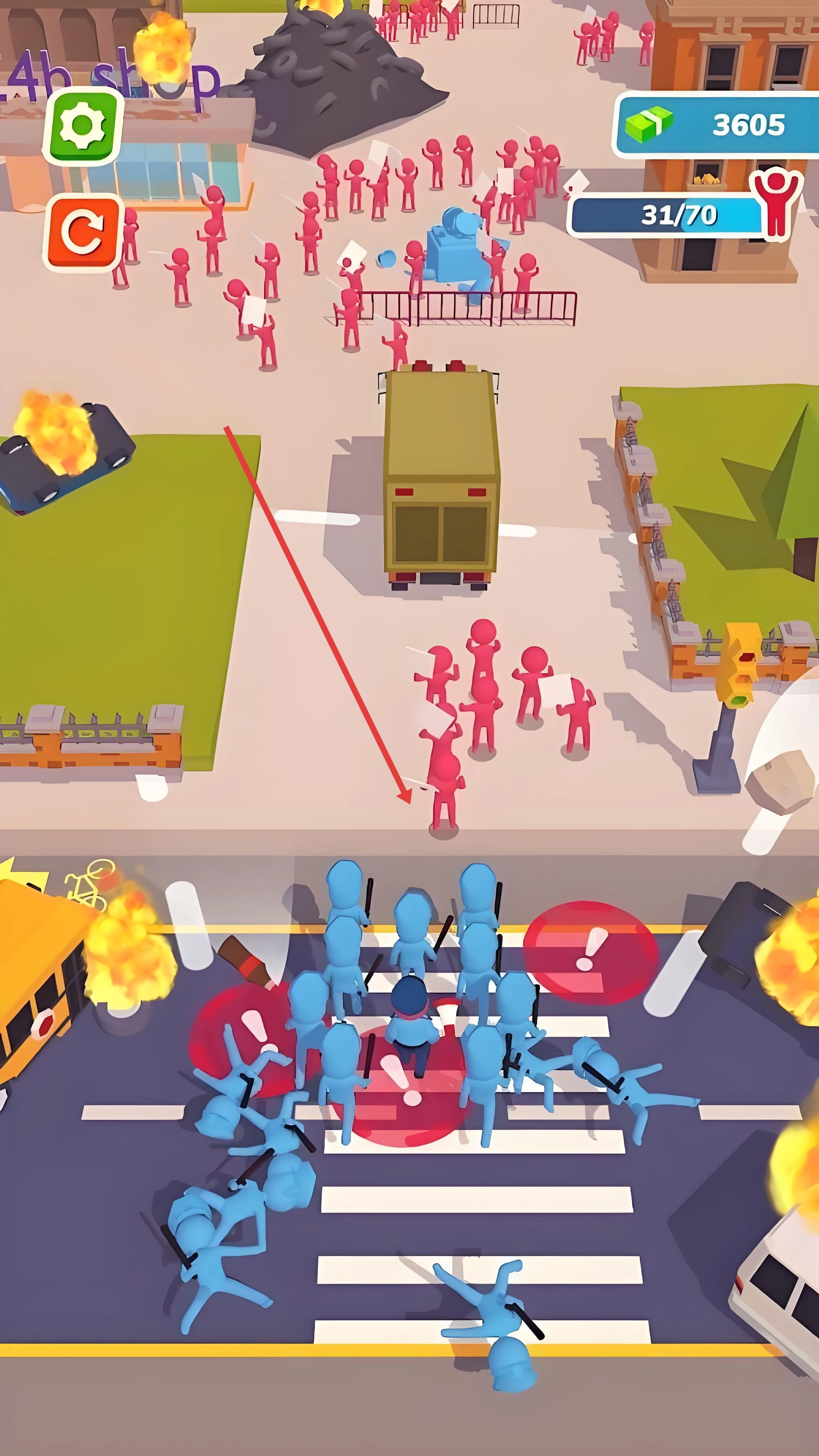 2、限时挑战机制:每一关都设有严格的倒计时限制,玩家需在规定时间内召集到指定数量的人群,若能在限时内顺利完成任务,即可触发“暴走模式”。