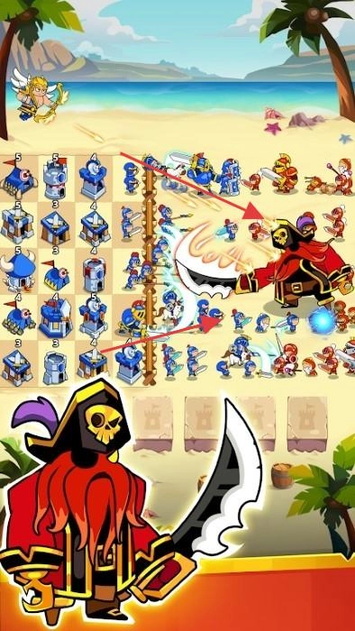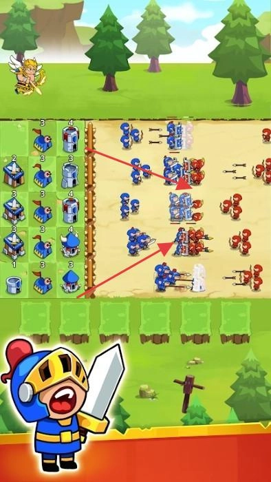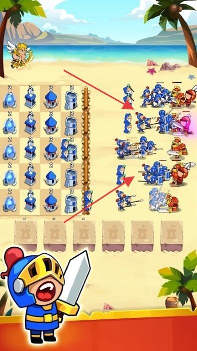 1、合并小兵组建部队:在收集普通小兵,通过合并操作将其升级为更强兵种,组建实力强大的战斗部队,为保卫王国做好准备。