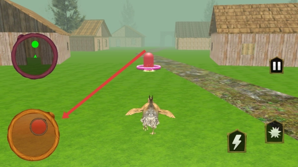 进入游戏场景后,你可以滑动左下角的圆形摇杆来操控母鸡移动,让它前往目标区域以完成任务。