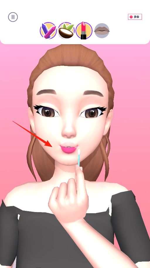 3、取一根棉签,轻轻涂抹在嘴唇上,为角色调整唇色、完成美妆效果,从而体验化妆的互动机制。