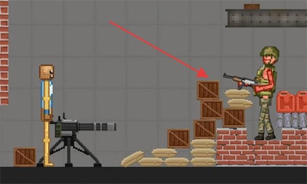 2、引导角色,借助箭头指向的木箱,搭建掩体或路径,应对持枪敌人。