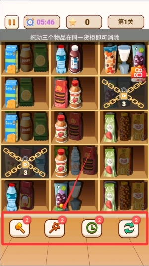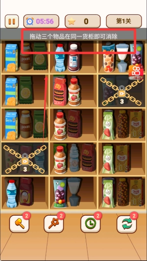 4、创新性地把仓储收纳的概念融入经典消除玩法,借助视觉呈现与操作反馈,为传统三消游戏注入了全新活力。