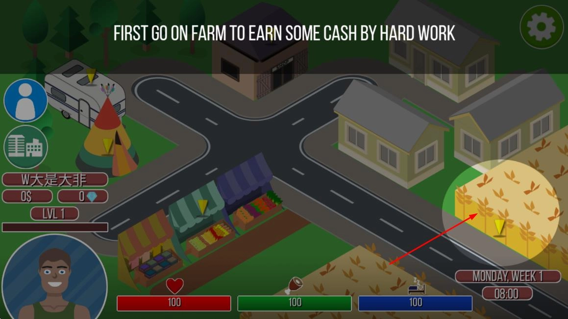 1、进入游戏后自定义角色外观与初始属性,在新手引导下选择第一份工作并租赁公寓开启虚拟生活。