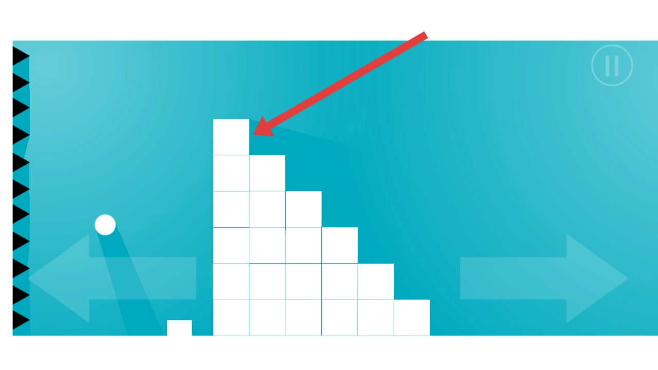1、在Phases的第一关场景里,你需要操控白球角色,借助左侧的箭头图标来调整移动方向,让白球滚动起来并撞击白色方块结构。