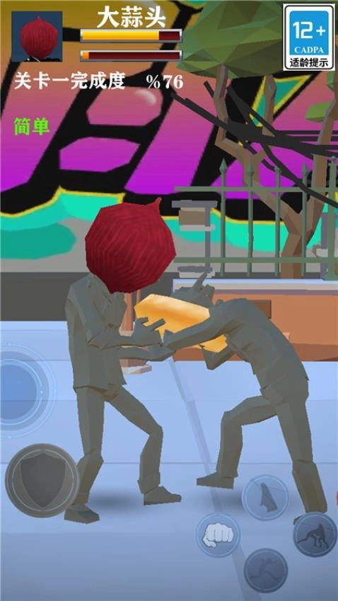 3、场景互动是制胜的关键,需巧妙利用环境里的特殊道具,例如接住飞来的平底锅就能得到一次强力反击的机会,而踩到香蕉皮则会触发滑稽的滑倒动画。