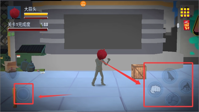 3、左下角的摇杆用于操控角色移动,右下角的轮盘则负责控制角色发起攻击。