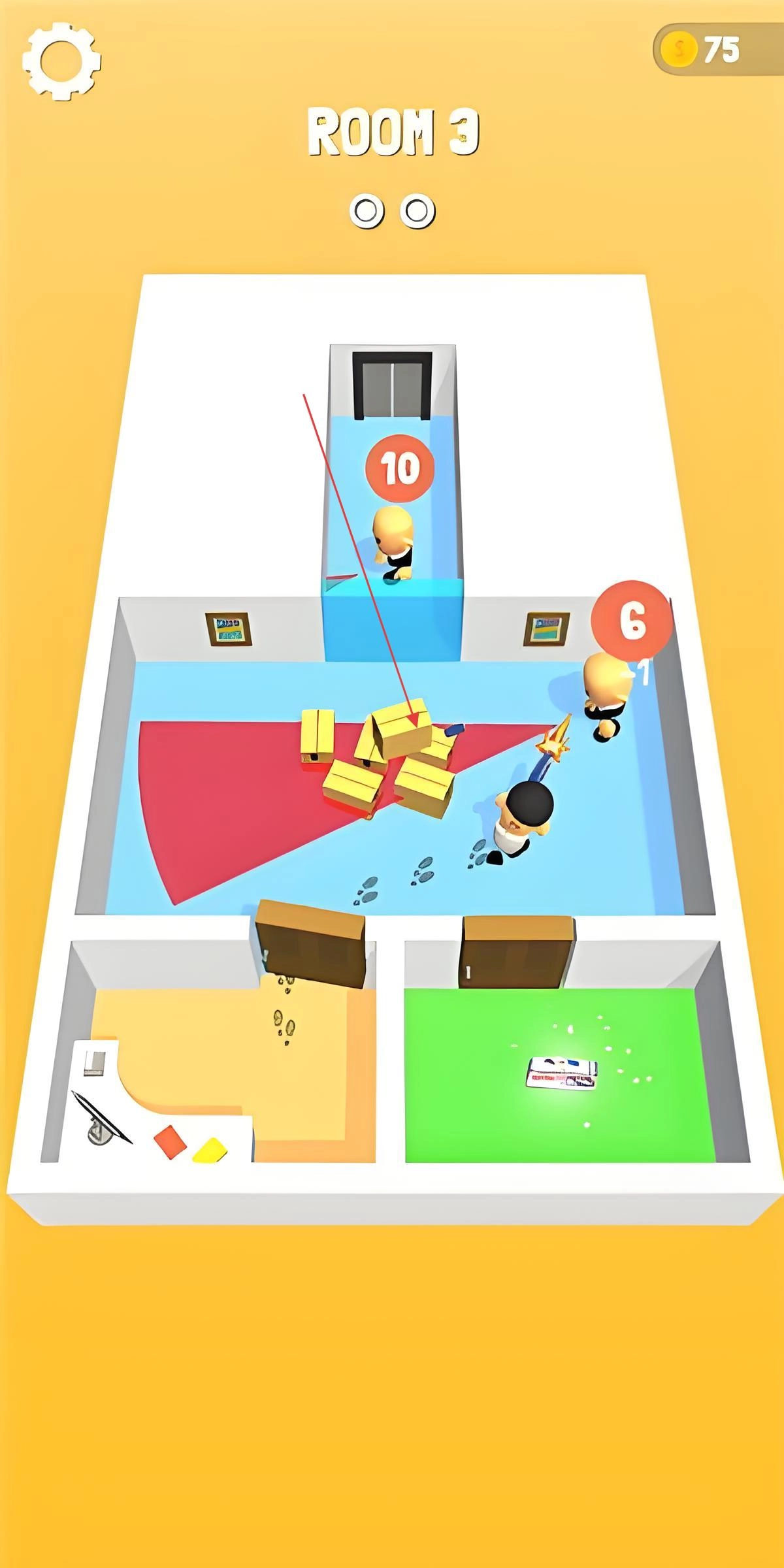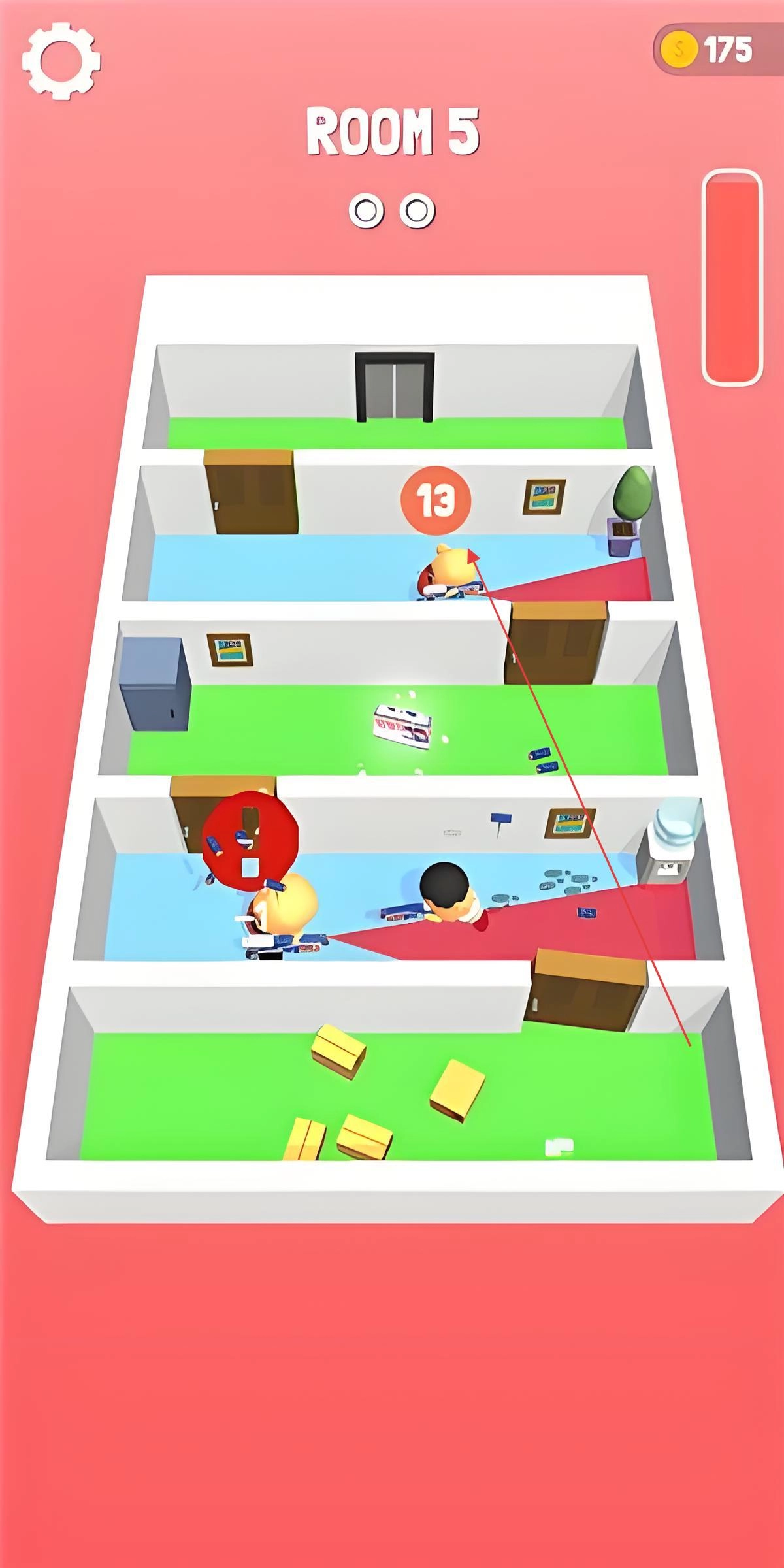 3、多元关卡设计:涵盖客厅突袭、厨房混战等10类主题场景,每个关卡配置巡逻兵、盾牌兵等各异的敌人组合,后续还会新增陷阱房与限时挑战环节。